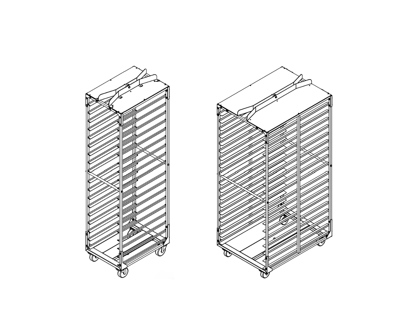 Hakensystem: Einfache und wirtschaftliche Lösung zum Aufhängen von Wagen, hält den Boden glatt für eine einfache Reinigung. Geeignet für Wagen, die für dieses System konzipiert sind – reduziert Gewicht und Wartung.
